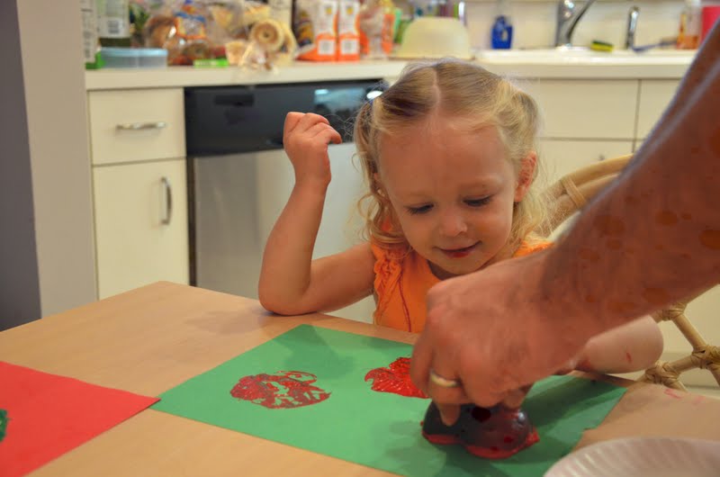 These didn't work out as great as I had hoped but we had fun making apple prints on paper with some paint and apples cut in half. And then of course snacking on the ones we didn't use for our crafting.
