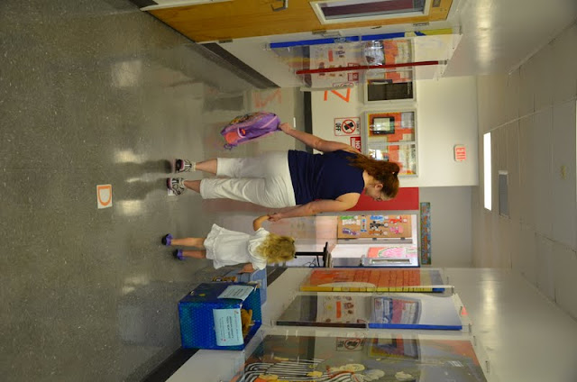 Checking out the classroom and meeting some friends. Excuse Mommy, she was looking a hot mess because she rolled out of bed, excited about having some gym time while A was at preschool.