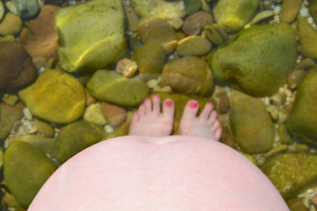 There was some little fishes swimming around our feet and since it was a private beach there was a lot less people and we could relax a little more while she played.